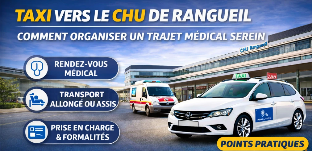 Si vous avez une prescription médicale de transport (bon de transport), une prise en charge CPAM peut être possible selon votre situation.